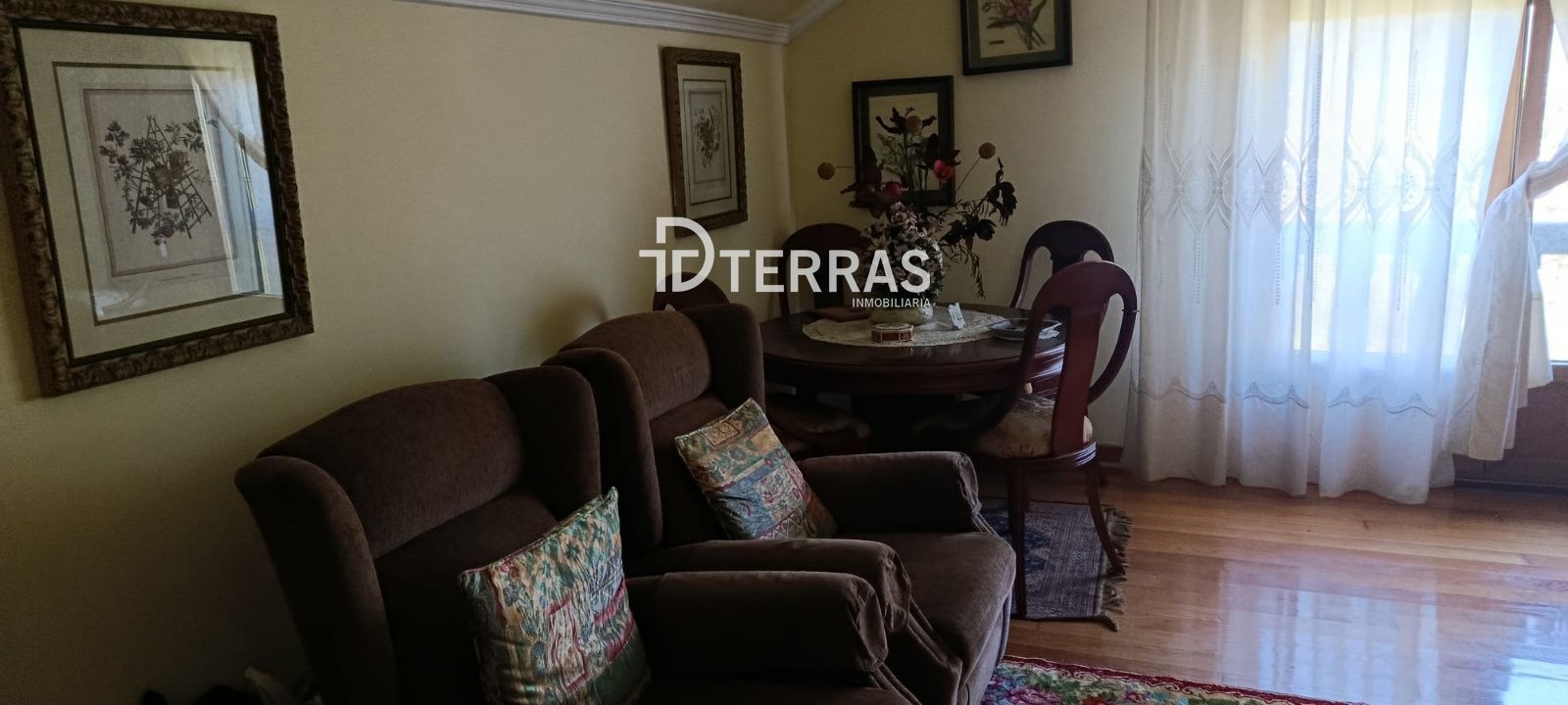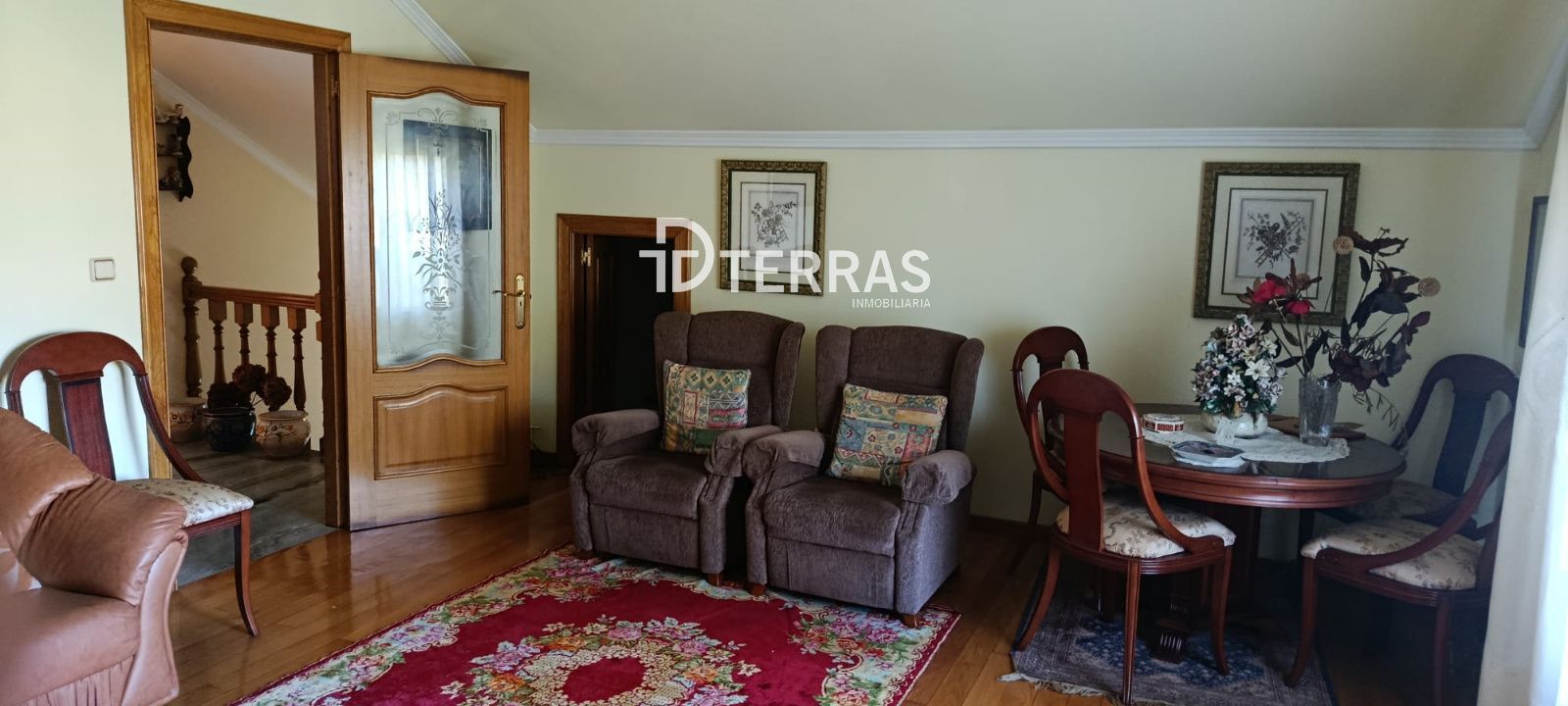 En la planta principal, un luminoso salón conecta con el exterior, creando un ambiente cálido y acogedor. La cocina, funcional y equipada, ofrece espacio suficiente para el día a día y reuniones familiares. También dispone de calefacción individual de gasóleo, asegurando confort durante los meses más fríos.